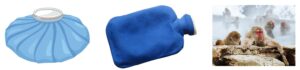 Applying heat can ease discomfort; hot baths, hot water bottles and various types of heat pads, ranging from heat pads that can be microwaved to ones that use battery power and last for a longer period. Superficial heat relieves pain in a number of different ways. It stimulates thermos receptors in the skin and deeper tissues.
